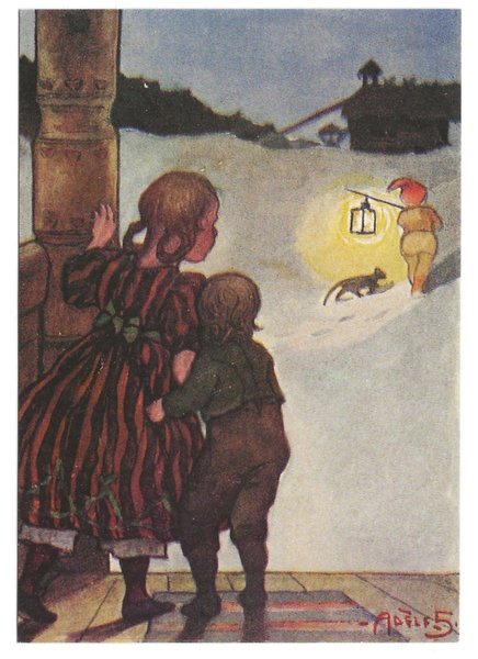 ADELE SÖDERBERG - BARN SER TOMTE MED KATT - JULKORT