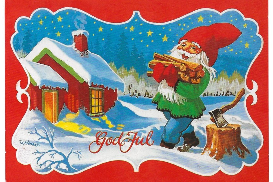 WIMO - TOMTE HÄMTAR VED - JULKORT