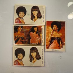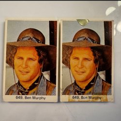 Två samlarkort med Ingemar Stenmark. Det ena kortet visar ett porträtt av Ingemar Stenmark med nummer 656. Det andra kortet visar Ingemar Stenmark åkandes skidor med nummer 698.