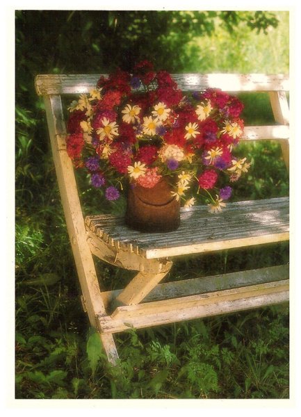 Trädgårdssoffa med blommor