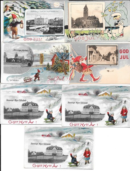 Äldre vykort med motiv av Norrköping, Skänninge och julmotiv nen mindre storleken