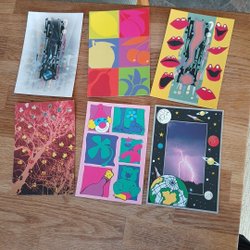 Ett knippe vykort med olika motiv.