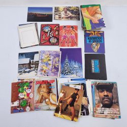 En samling vykort med varierande motiv. Innehåller bland annat tecknade bilder, naturbilder och illustrationer. Perfekt för samlare eller den som vill skicka en unik hälsning.