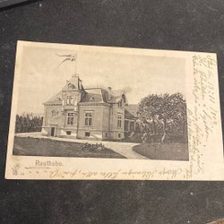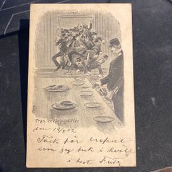 Ett vykort med texten "Lagmansö. Hjärtliga lyckönskningar på födelsedagen af Herman".