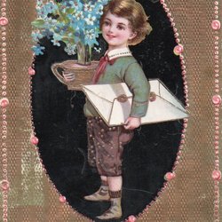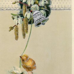 Ett vackert gammalt påskkort med motiv av kycklingar och blommor. Kortet är tryckt med texten "Glad Påsk" och har en charmig vintage-känsla. Guld/relief