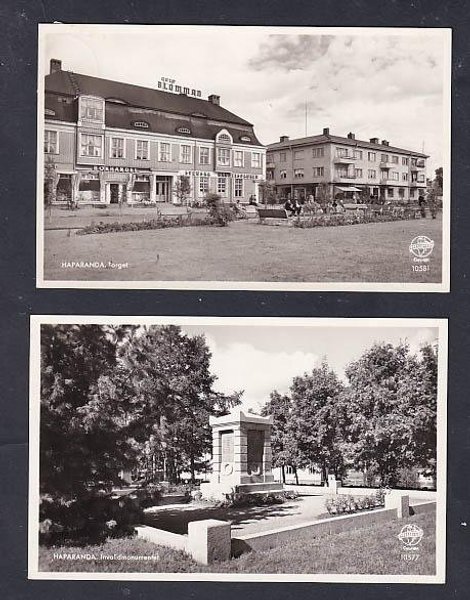 Haparanda, 2 st Pb-kort, Torget och Invalidmonumentet