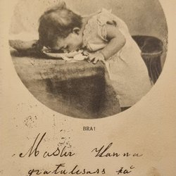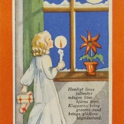 Flicka, i regnrock & Sydväst styr skeppet. Skrivet 16/12 1905
