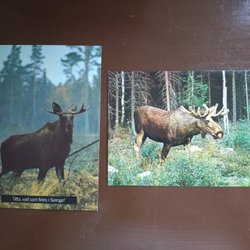 Vykort med motiv från Japan. Korten visar olika landskap och byggnader, inklusive berg, sjöar, tempel och broar. Ett kort har en bild av Fuji, ett annat visar Sarusawa Pond och ett tredje Heian Shrine. Korten är från Japan Travel Bureau.