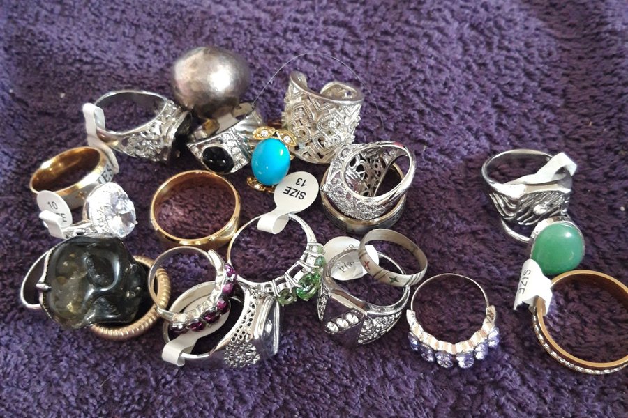 21 blandade ringar. I olika,stor lekar och former.