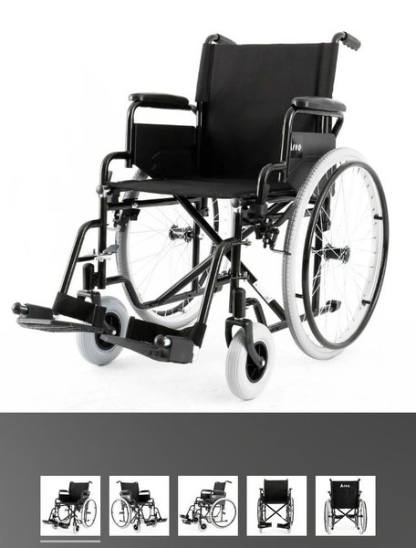 Snygg design: Snygg svart färg och hållbar aluminiumram gör denna rullstol både funktionell och stilren. Dessutom ihopfällbar och enkel att ta med.
