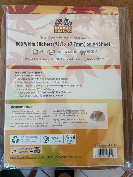 800 vita klisteretiketter; 100 ark, utskrivbara vita klistermärkespappersetiketter för laser/bläckstråleskrivare, klistermärkesstorlek 105 x 74 mm
