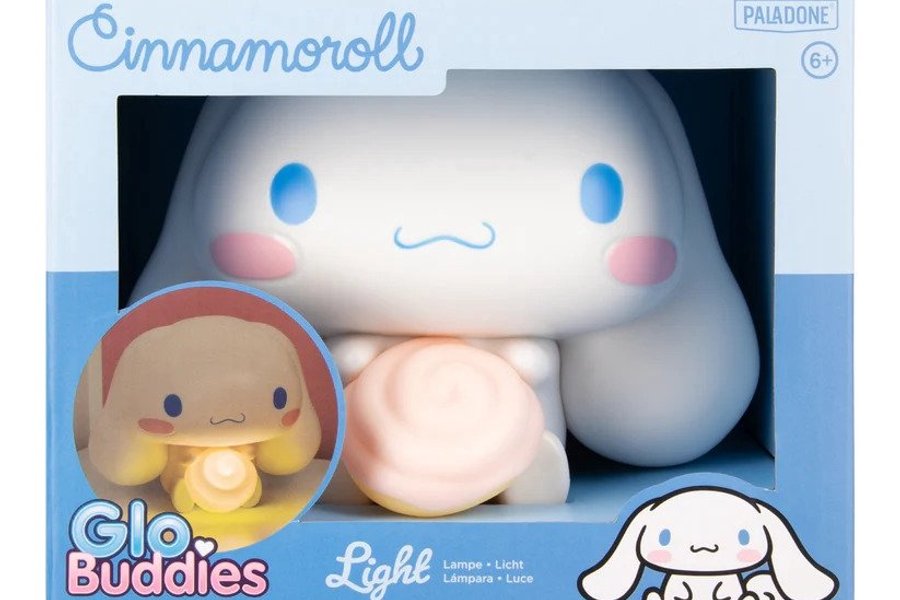 Brighten up your space with this Cinnamoroll GloBuddies Light. Standing at 14cm tall, this 3D figure is shaped like Sanrios shyest character, Cinnamoroll, clutching a cinnamon bun in his paws. When turned on the bun gives off a warm glow. Place it on your bedside table or on a shelf for a quick splash of cuteness. Power the light with 2x AA batteries (not included) - no wires needed! The Cinnamoroll GloBuddies Light is a sweet night light companion for your desk, shelves or bedroom.