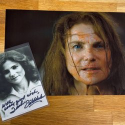 Äkta handskriven autograf av Rutanya Alda, lettisk-amerikansk skådespelerska med en lång karriär inom film och tv. Hon är mest känd för sina roller i The Deer Hunter (1978), Rocky II (1979) och kultklassikern Mommie Dearest (1981), där hon spelade hushållerskan Carol Ann. Alda har medverkat i över 100 produktioner och är uppskattad för sin intensitet och närvaro, både i drama och skräckfilm. En respekterad karaktärsskådespelerska med stark kultstatus bland filmfans. Ett utmärkt samlarobjekt för cineaster och samlare av klassisk 70–80-talsfilm.