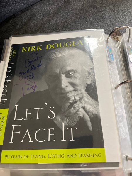 Signerat bokomslag från Hollywood ikonen Kirk Douglas. Bok medföljer ej.