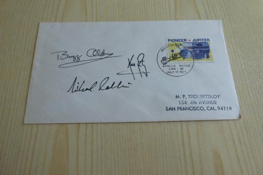 Rymd, kuvert. Apollo 11 autografer är tryckta.