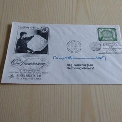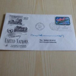 Dag Hammarskjöld , FDC. Autograf är tryckt.