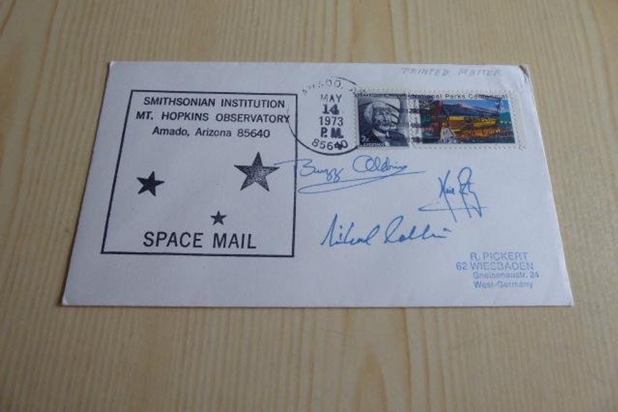 Rymd, kuvert. Apollo 11 autografer är tryckta.