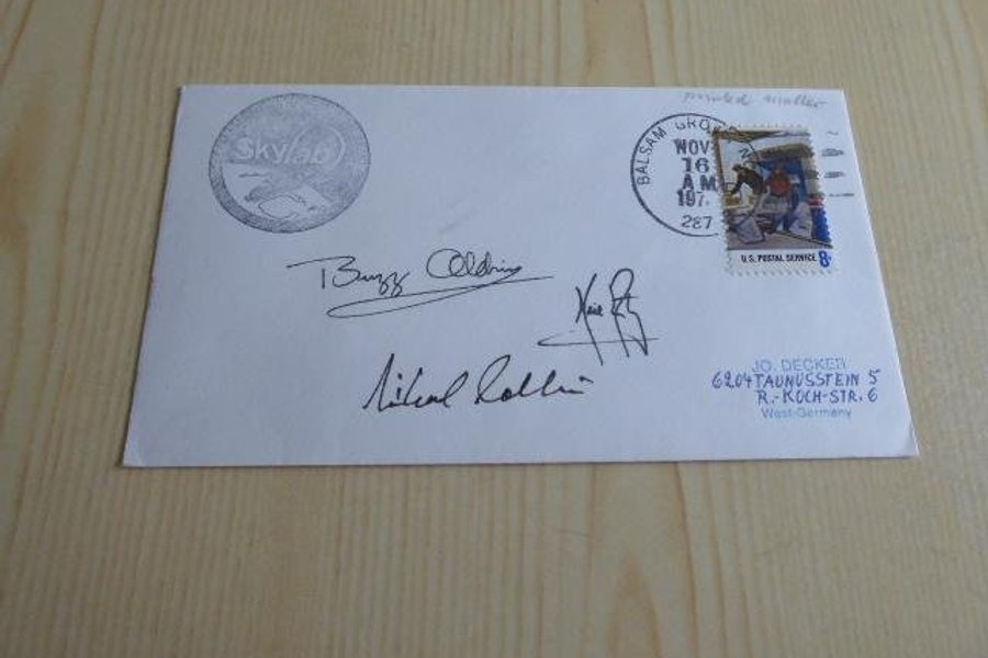 Rymd, kuvert. Apollo 11 autografer är tryckta.