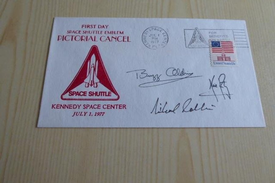 Rymd, kuvert. Apollo 11 autografer är tryckta.