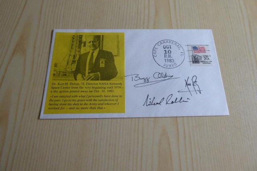 Rymd, kuvert. Apollo 11 autografer är tryckta.