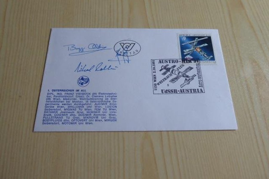 Rymd, kuvert. Apollo 11 autografer är tryckta.