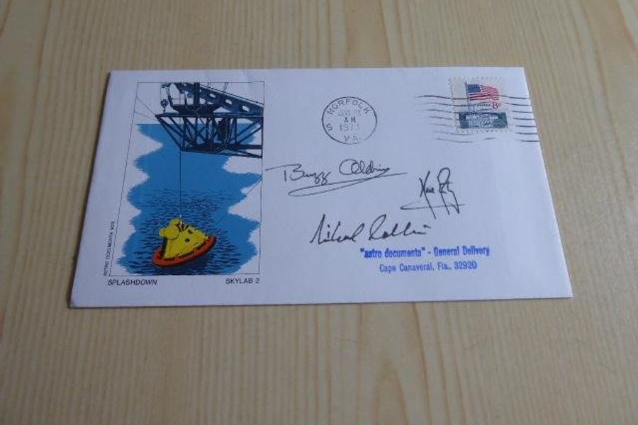 Rymd, kuvert. Apollo 11 autografer är tryckta.