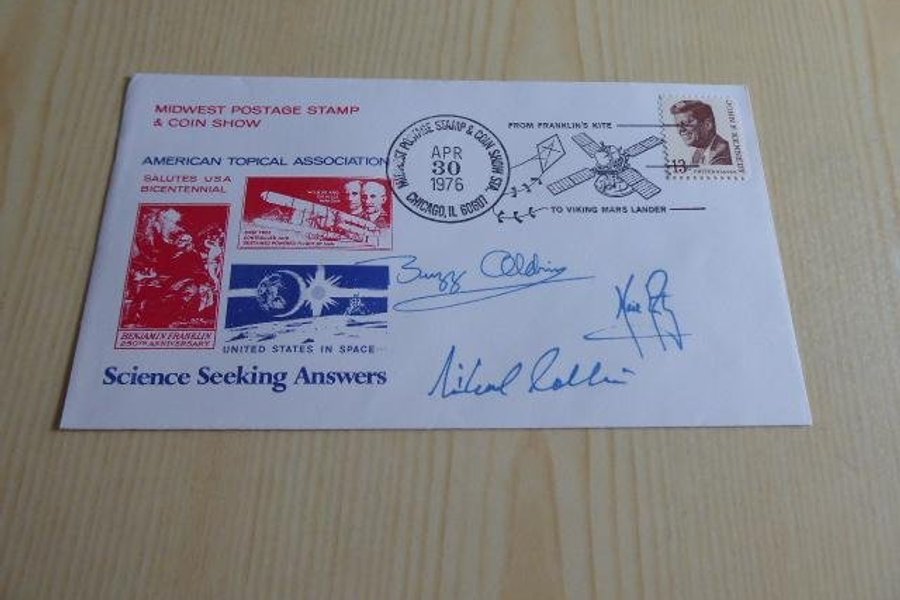 Rymd, kuvert. Apollo 11 autografer är tryckta.