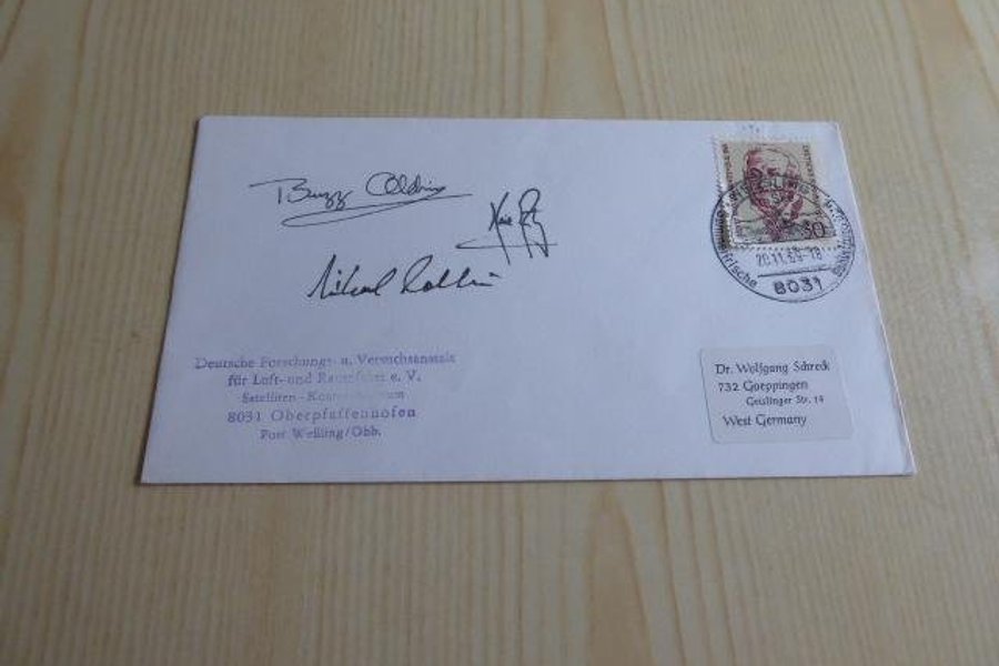Rymd, kuvert. Apollo 11 autografer är tryckta.