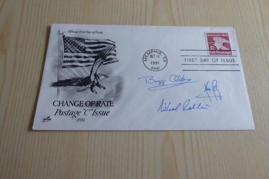 Rymd, kuvert. Apollo 11 autografer är tryckta.