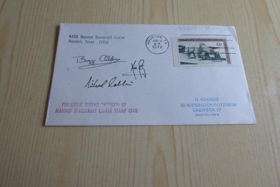 Rymd, kuvert. Apollo 11 autografer är tryckta.