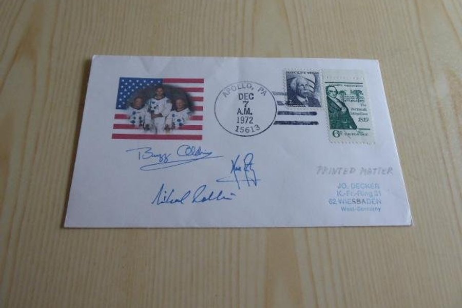 Rymd, kuvert. Apollo 11 autografer är tryckta.