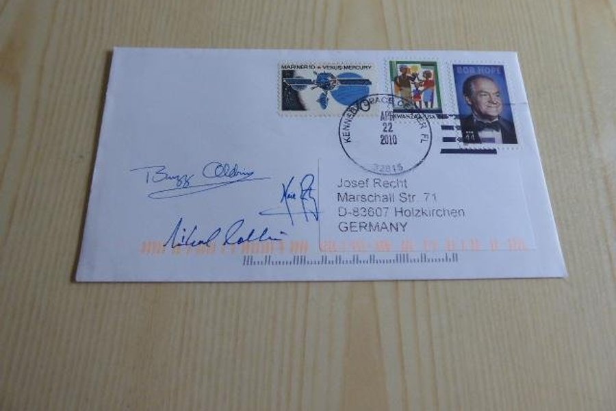 Rymd, kuvert. Apollo 11 autografer är tryckta.