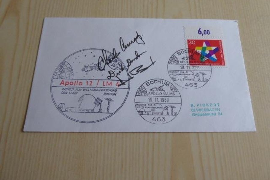 Apollo 12 rymd kuvert. Autografer är tryckta.
