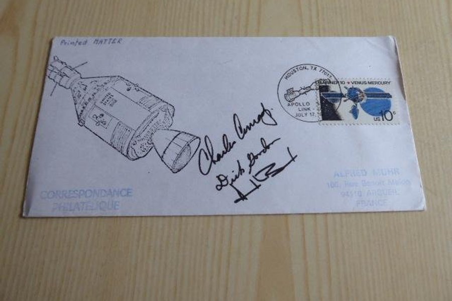 Apollo 12 rymd kuvert. Autografer är tryckta.