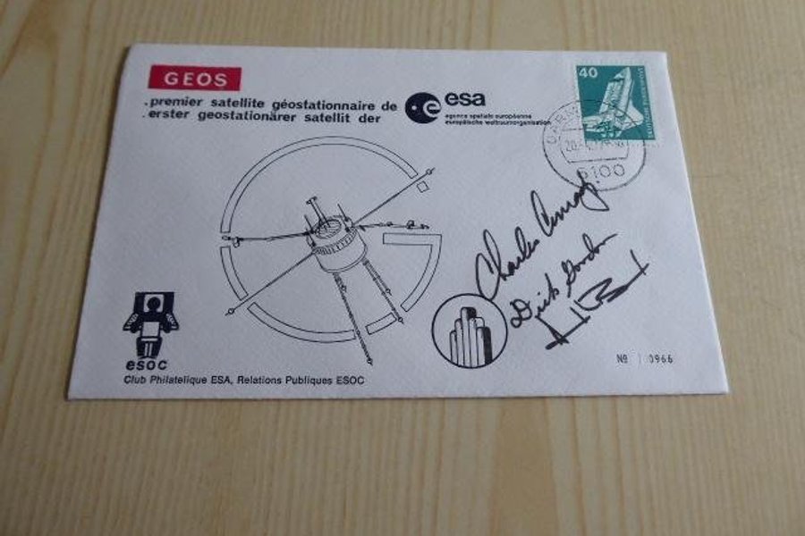 Apollo 12 rymd kuvert. Autografer är tryckta.
