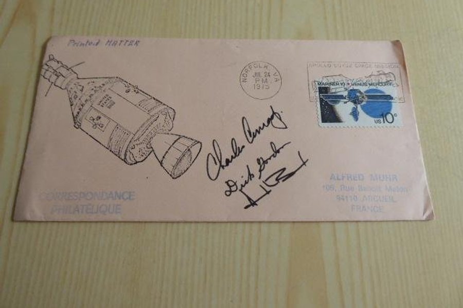 Apollo 12 rymd kuvert. Autografer är tryckta.