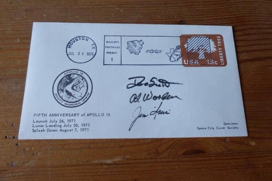 Apollo 15 rymd kuvert. Autografer är tryckta.