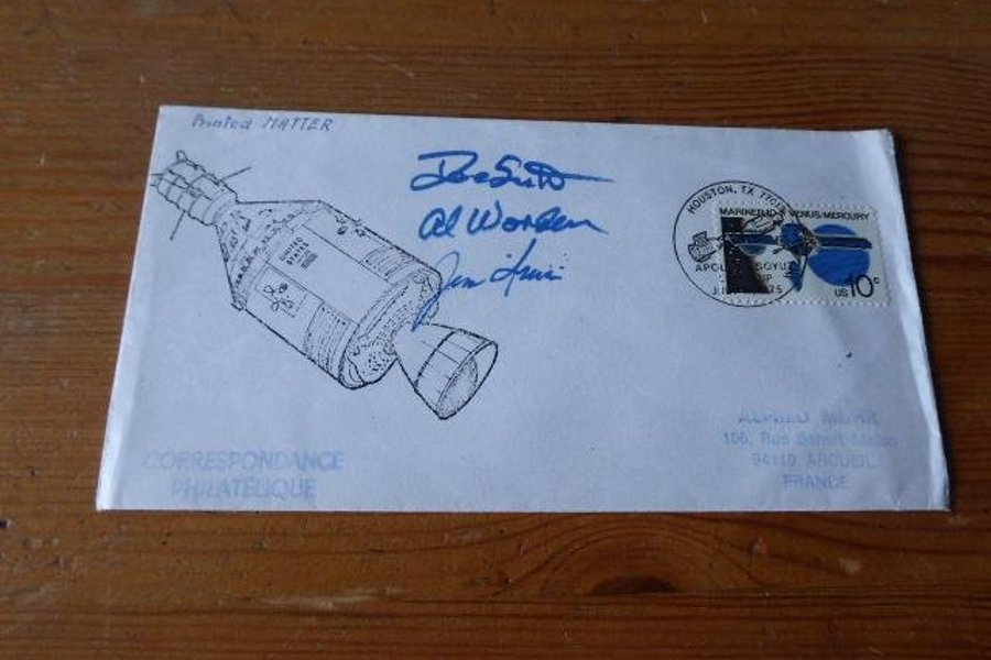 Apollo 15 rymd kuvert. Autografer är tryckta.