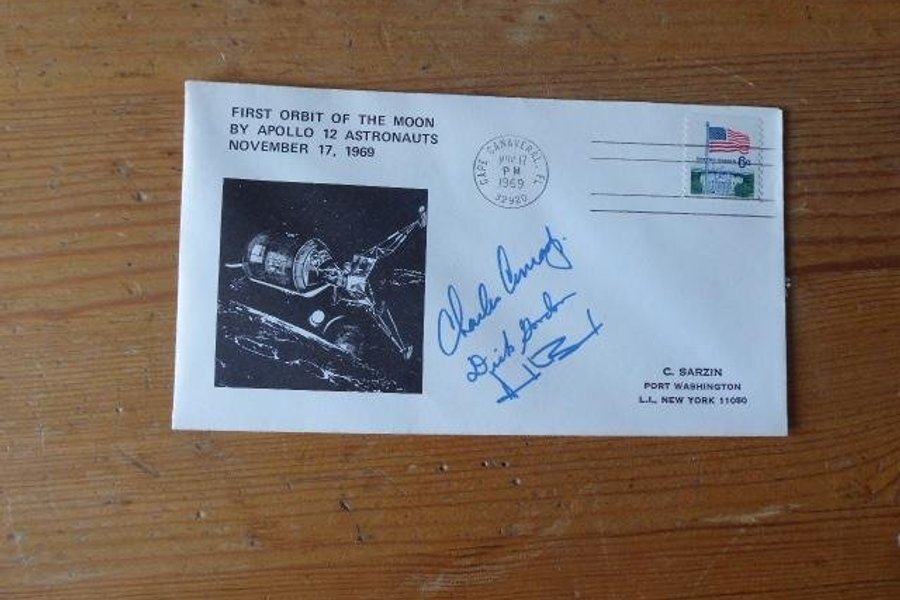 Apollo 12 rymd kuvert. Autografer är tryckta.