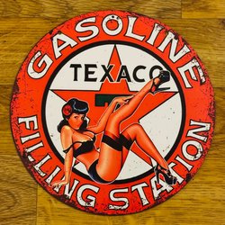 TEXACO Aluminiumskylt med diameter 20cm. Hål klart från fabriken +++