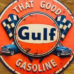 Aluminiumskylt GULF . Diameter 20cm. Hål färdiga från fabriken +++ utrop 1kr +++