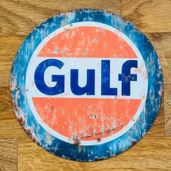 GULF OIL Aluminiumskylt med diameter 20cm. Hål klart från fabriken! +++