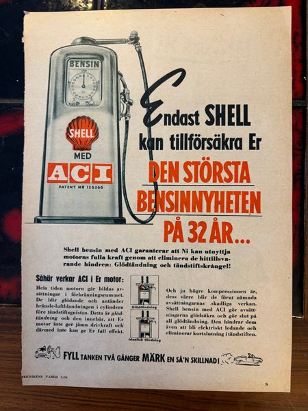 Shell ACI bensin 1954 annons