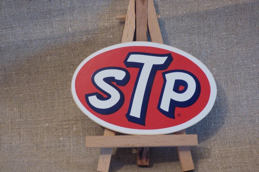 En Dekal oval med reklam för STP