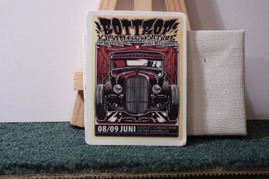 Klister dekal med motiv från Bottrop Kustom Kulture 2012. Datum 08/09 Juni, Flugplatz Schwarze Heide, Bottrop Kirchhellen. dekal för entusiasten!