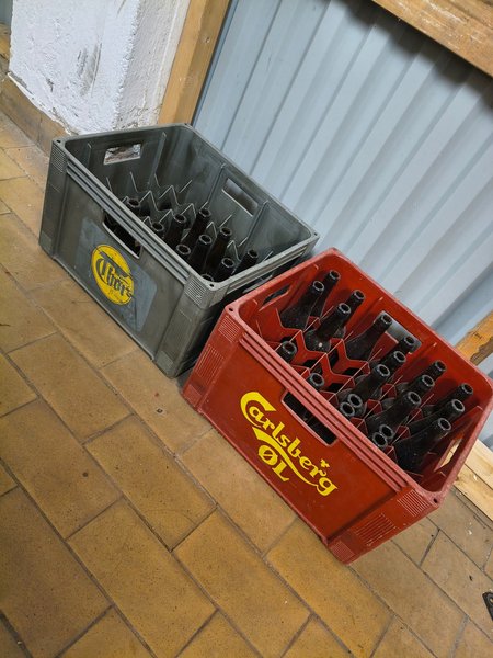 Säljer 2 ölbackar med glas. Perfekt för retro hemmet eller garaget