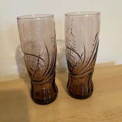 Ett Coca-Cola glas. Höjden är cirka 15 cm.