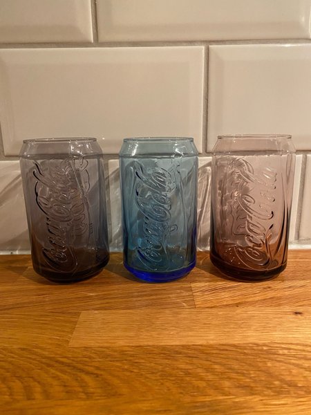3 st Coca- Cola glas i olika färger.
