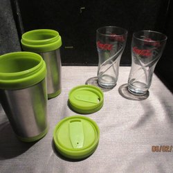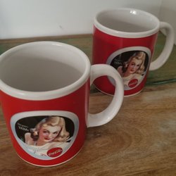 Två stycken muggar med Coca-Cola tryck.