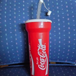 Mugg med Coca-Cola tryck.